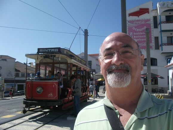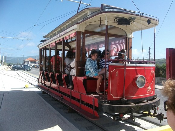 Na Praia das Maçãs, consegui lugar no assento da frente do eléctrico...
